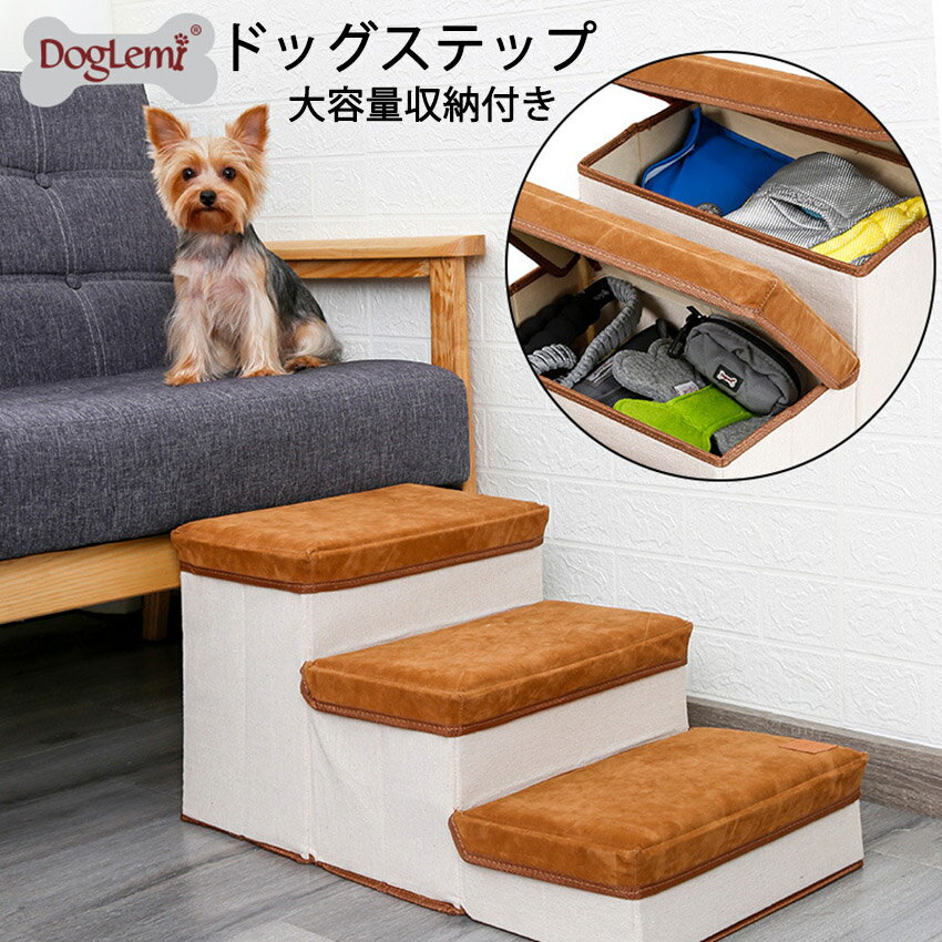 【送料無料】ドッグステップ 犬 3段 ペット ステップ 階段 小型犬 室内犬 ミニチュアダックス チワワ プードル 足腰への負担を軽減 ヘルニア 高齢犬 シニア犬 介護用品 ブラウン ベージュ ハグワン 犬の階段 大容量収納付き 滑り止め 折り畳み可能 弾力性 実用性が高い