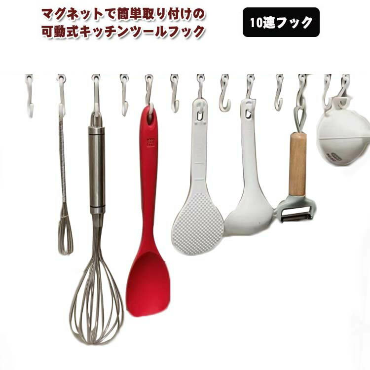 【最安挑戦!57%OFF&3864円→1932円!】フック マグネット可動式キッチンツールフック タワー 10連フック キッチン ツール 吊り フック 調理道具 収納 台所 吸盤 強力 ステンレス スライド フック 掛けやすい 吊下げ 壁面収納 キッチン 収納