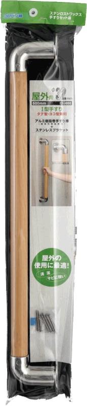 屋外用-/-/OI-600・Style:屋外用・パッケージ個数:1・セット内容:手すり(ブラケット付)、十字穴タッピングねじ6本・表面材:オレフィン系エラストマー樹脂(耐候性仕様)・芯材:アルミパイプΦ28×2ミリ厚・ブラケット材質:SCS13ステンレス鋳鋼品表面には耐侯性の高いオレフィン系エラストマー樹脂(木目ライトブラウン) を採用し感触もソフトでスベリにくくいつまでも美しい手すりです。 芯材にはサビに強いアルミパイプを採用していますので強度にもすぐれた安心設計です。