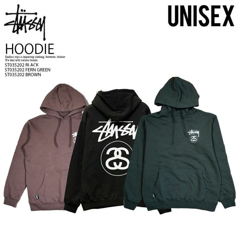STUSSY ステューシー パーカー フーディー SOLID STOCK LINK HOOD (ソリッド ストック リンク フード) トップス フーディー プルオーバー トレーナー パーカー 裏起毛 黒 ST035202 BLACK (ブラック) 緑 FERN GREEN (グリーン) 茶色 BROWN (ブラウン) エンドレストリップ