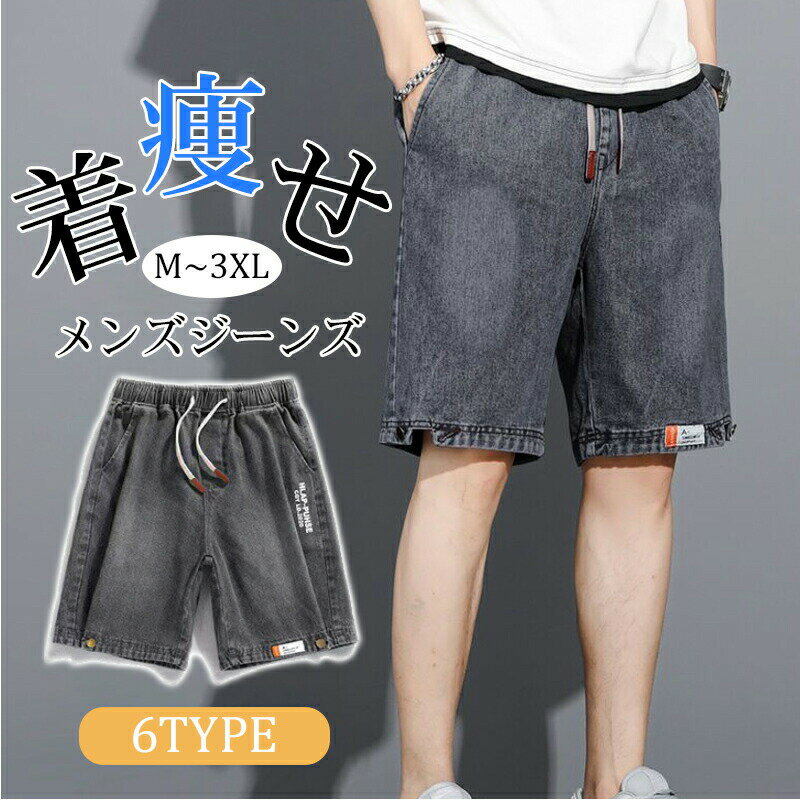 サマーショートジーンズ メンズ 膝丈 コットンカジュアルバギーパンツ オススト ライプデニム ショート パンツデニム パンツ メンズ ジーンズ カジュアル 大きいサイズ ショート 春夏 薄手 ゆったり ハーフパンツ 五分丈 グレー ブルー