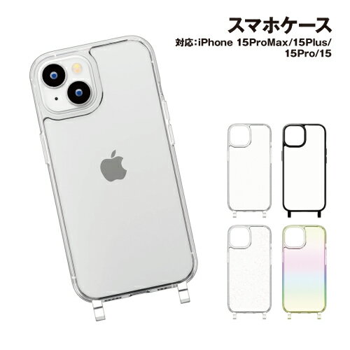 iPhone15 iPhone15Pro iPhone15Plus iPhone15ProMax用 ショルダーストラップホール付ハイブリッドケース PG-23A-DPT06-9 /クリア ブラック ラメ オーロラ