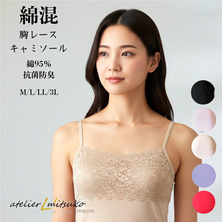 【お買い物マラソン 全品ポイント10倍】キャミソール チラ見え 防止 綿95% M/L/LL/3L ノースリーブ レディース インナーウェア 肌着 無地 レース 大きいサイズ有 おしゃれ かわいい シンプル カジュアル デイリー 細ストラップ 大人 フェミニン メール便3枚まで