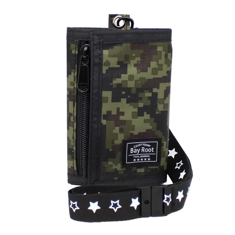 [BayRoot] 財布 子供 男の子 キッズ 小学生 中学生 紐付き デジタル 迷彩 小銭入れ 軽量 薄型 三つ折り 首掛け ストラップ