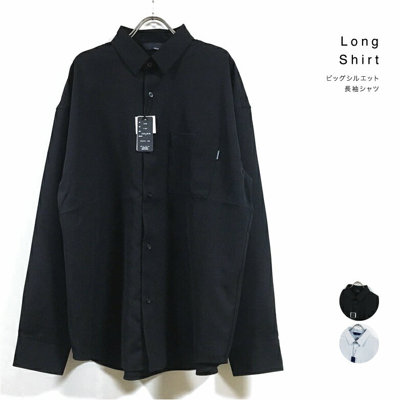 ナチュラルストレッチ ビッグシルエット 長袖 シャツ 無地 24105 メンズ 【 送料無料 】 ポリエステル ルーズ トップス ストリート系 ファッション ブラック グレー 大きめ M L オーバーサイズ