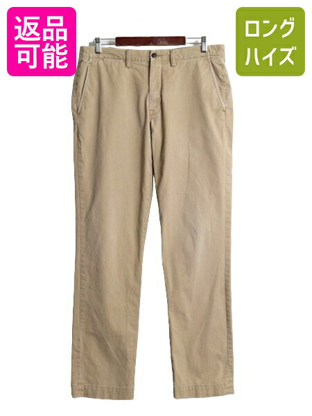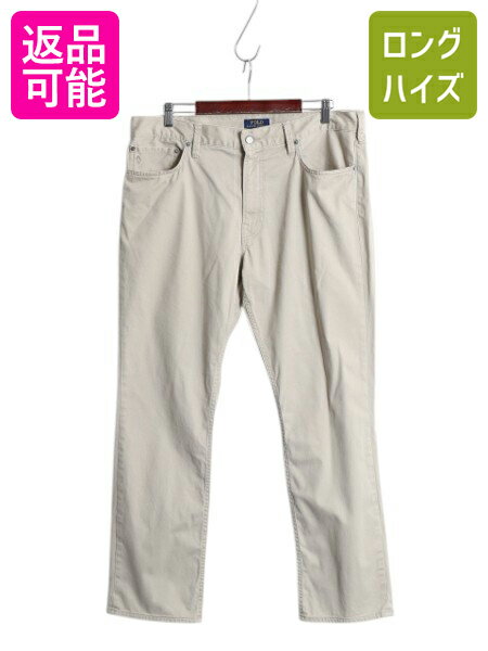 【11/18 ご愛顧感謝デーポイントUP!】 ポロ ラルフローレン チノ パンツ メンズ 36 30 / 古着 スリム ストレート ストレッチ コットン チノパン スラックス ノータック ベージュ| 中古 POLO RALPH LAUREN チノパンツ タックなし コットンパンツ ボトムス トラウザー 本革 レ