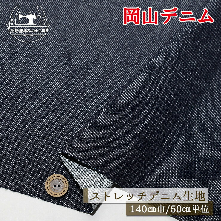 【無地/ネイビー】岡山デニム ストレッチ性少し有 11〜12オンス 厚み1ミリ 広幅140cm デニム生地 布帛【50cm単位 メール便1ヶまで】(2-709)
