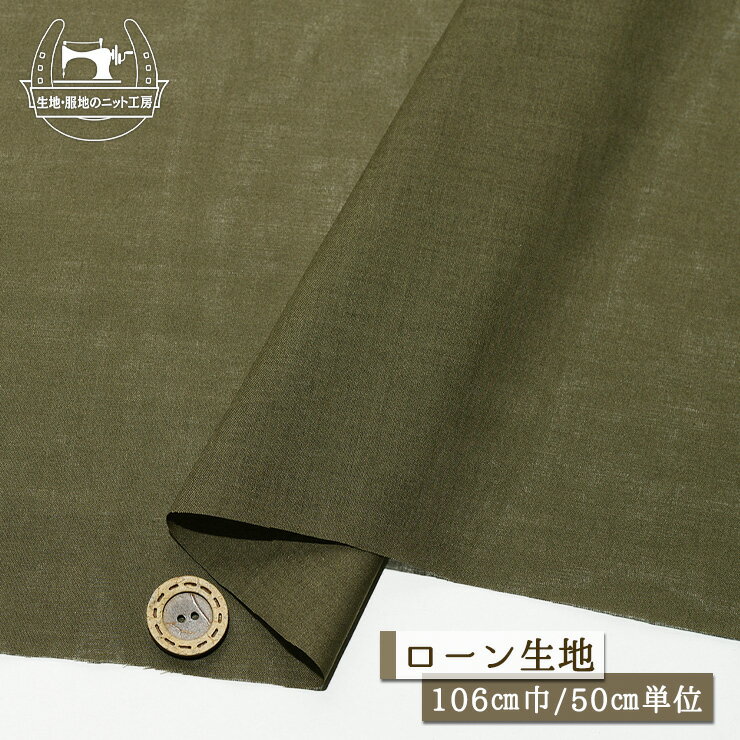 【無地/オリーブグリーン】ローン生地 コットン 薄手 幅106cm 横方向に少しだけストレッチ性有 透け感有 布帛【50cm単位 メール便5ヶまで】(4-1969)