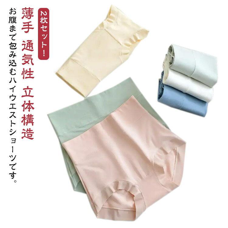 立体ショーツ レディース 深め 2枚組 下着 腹巻きパンツ ハイウエスト 美尻 補正下着 お腹まで包む 冷え対策 パンティ 無地 ストレッチ性 薄手 通気性 食い込まない 締め付けない 大きいサイズ 送料無料