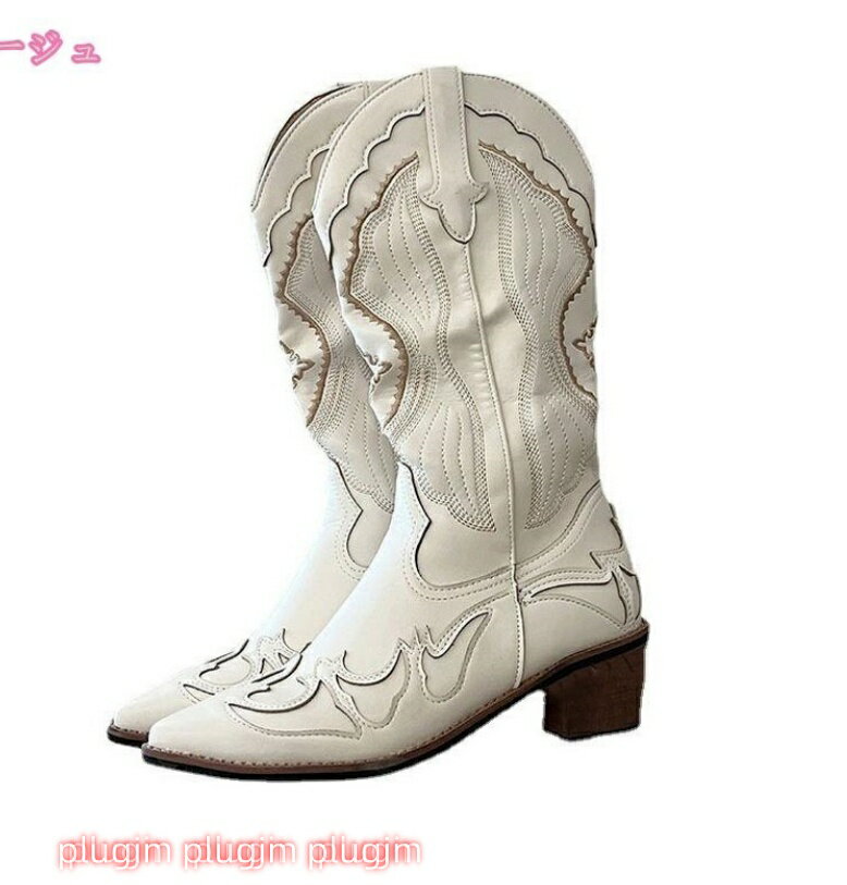 レディース ミドルブーツ ポインテッドトゥ 革 太めヒール ウエスタンブーツ 歩きやすい カジュアル レディース クラシック ウェスタンブーツ ロングブーツ 太ヒール 秋冬 ブーツ レディース ハイカット 軽量 アンクルブーツ RaogtCYU
