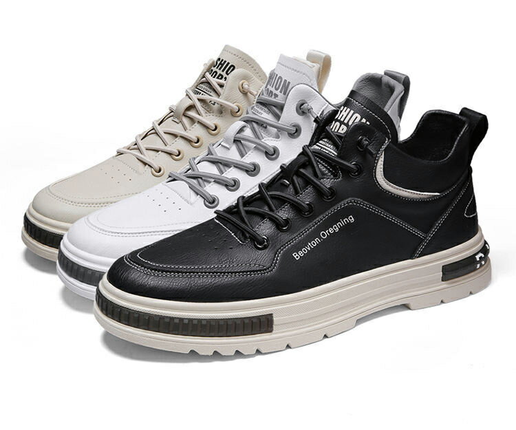 スニーカー メンズ 運動靴 白 黒 厚底 レザー 軽量 人気 防水 ハイカット 大人 ウォーキングシューズ アウトドア ジョギング カジュアル 学生 おしゃれ 歩きやすい かっこいい 革靴 レースアップ サラリーマン 通勤 通学 【防水】仕様としては防水ライニング材を甲の間に巻き込んで 成型しており底面(底の接地面)より4cmは内部に水が侵入しにくい防水設計です。 4cmを超えた場合は内部に水が浸入してしてきますので、ご注意ください。雨天兼用で突然の雨でも安心の一足です。1足持っているだけで、毎日のお出かけからアウトドアまで使えるお洒落な「レースアップウォーキングシューズ」。ちょっとした運動や通勤通学など様々な用途でどうぞ。【足長効果】アッパーは光沢感のあるPUレザーを使用、お手入れの手間が少ないのがポイント。雨や汚れは拭き取るだけでOK!ハイカット仕様で足首細見え、足長効果をアップ。白い色で清潔感たっぷり、爽やかな印象を作る、ファッションのカジュアルアイテムとして重宝されるカジュアルシューズ。【履き易い】クッション性の高い中敷なので、歩行時の衝撃を吸収し優しく足を保護、曲げたり、走り回ったりが楽々、快適な歩行をサポート。歩行時の負担と軽減させる為に、軽量化を追求。さらに、耐久性を損なうことなく、疲れにくく足への負担も軽い、足に優しいソールです人気運動靴。【おしゃれ革靴】ソールは快適なゴム素材で、着地時の衝撃力を吸収し、クッション効果を高めます。 耐摩耗性に優れ、滑りにくい立体的な凹凸のあるソールが雨天を恐れず、安心して歩くことができます。シューズカラーはブラック、ホワイト、ベージュの3色をご用意しました。シンプルな形なので、様々なコーディネートに合わせて、色々なシーンで楽しんで。軽くて歩きやすいオールシーズンで履ける定番ミッドカットスニーカー。タウンユースで気軽なスタイルを楽しんで。【幅広く使えるブーツ】どんなカジュアルスタイルにも合わせやすい、ファッションレザーブーツは秋冬のマストアイテムです。ショートブーツでありながら、普段履きもできそうなおしゃれなデザインで汎用性の高さもポイント。通勤、登山、通学、アウトドアスポーツ、オフィスワーク、ウォーキング、旅行など使用することができます。アウトドアからカジュアルまで、春・夏・秋・冬のオールシーズン履けるメンズブーツです!親戚、家族、友人へのプレゼントとしても理想的です。 5