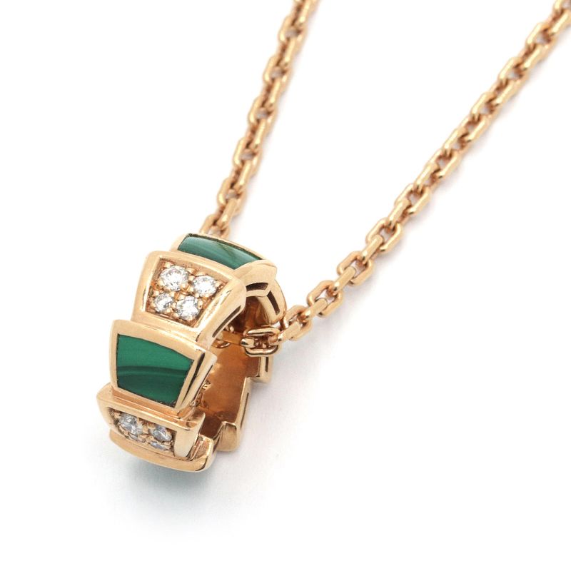 [返品OK] ブルガリ セルペンティヴァイパーネックレス 355958 K18PG マラカイト ダイヤモンド 蛇 スネーク ピンクゴールド 地金約11g【中古】【送料無料】