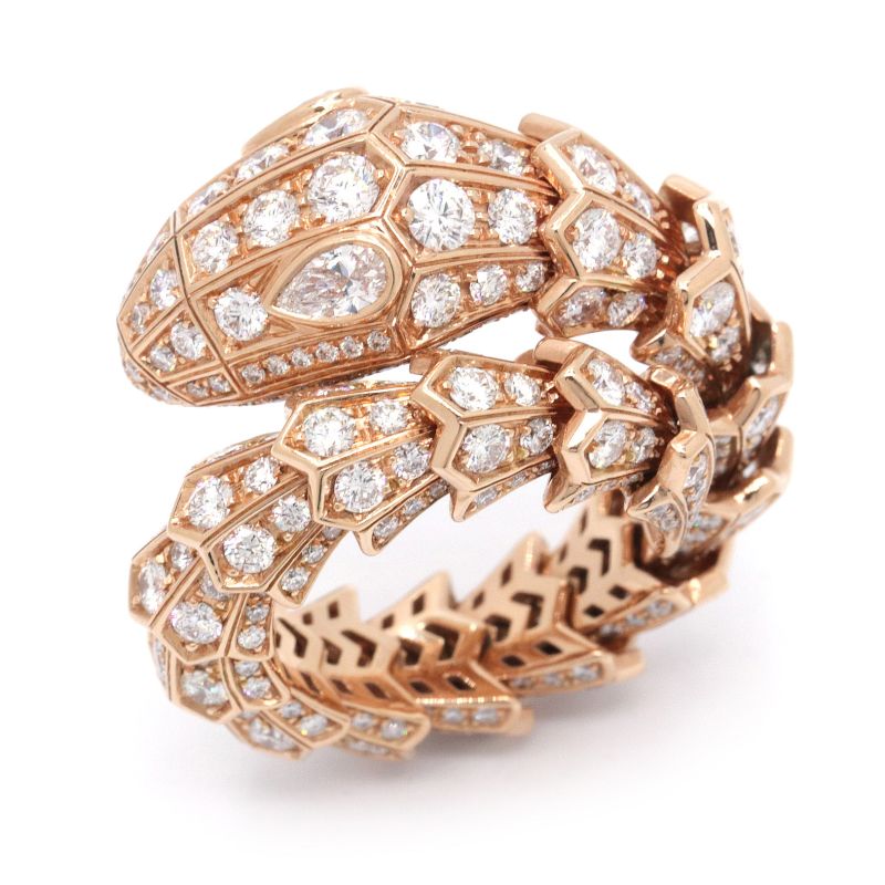 [返品OK] ブルガリ セルペンティヴァイパーリング 約11号 MLサイズ K18PG ダイヤモンド 蛇 スネーク ピンクゴールド 地金約17g【中古】【送料無料】