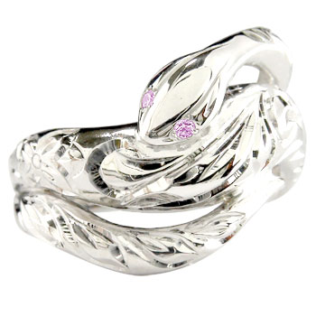 ハワイアン 蛇 リング プラチナリング スネーク ピンクサファイア 指輪 手彫り ハワイアンリング プラチナ900 巳 へび ヘビ ハワジュアニマルジュエリー 干支 金運 開運笑顔になるジュエリー お守り レディース