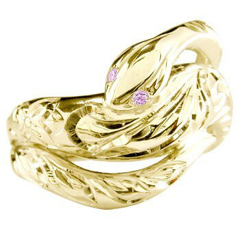 ハワイアン 蛇 リング スネーク ピンクサファイア 指輪 イエローゴールドk10 オリジナル 手彫り ハワイアンリング へび ヘビ 巳 10金 男女兼用 ユニセックス 男女問わず レディース