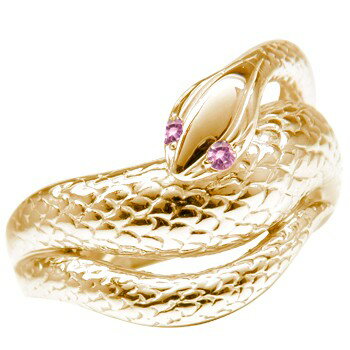 18金 リング スネークピンクサファイア蛇へび 巳 ヘビ 指輪 ピンキーピンクゴールドk18 k18PG 干支金運 開運 9月誕生石 18k 大きいサイズ対応 レディース