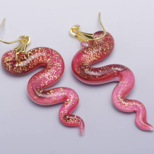 ベネチアングラス ピアス スネーク ピンク セクシー、妖艶を演出するなら、やっぱり蛇 ベネチアングラス 職人の技をご堪能ください