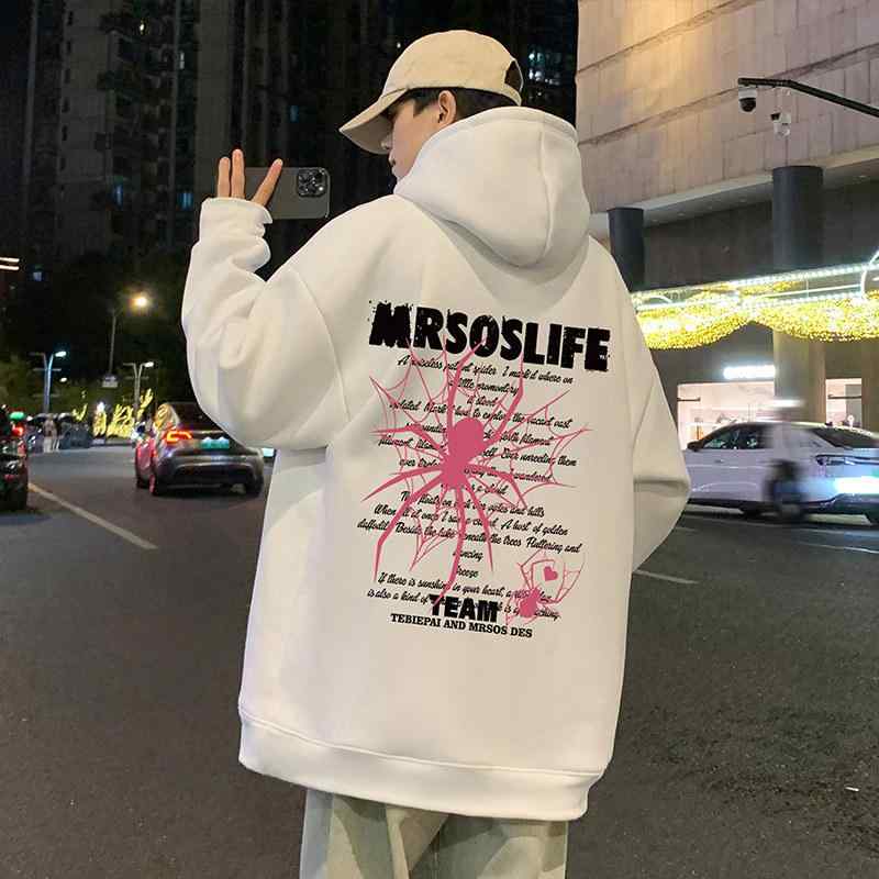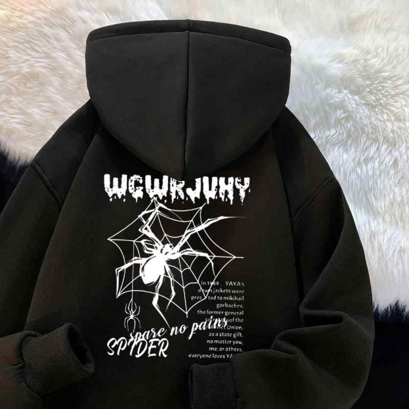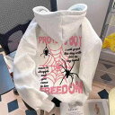 パーカー ゆったり ストリート メンズ レディース スウェットシャツ スパイダープリント ヒップホップ フード付き 秋冬 フリース 裏起毛 厚手 カジュアル レジャー アウトドア 休日 スポーツ タウンユース デイリーユース
