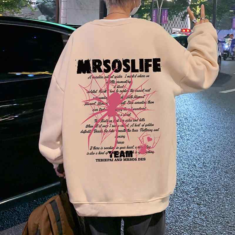 パーカー メンズ 秋冬 裏起毛 ゆったり アメカジ ストリート スパイダープリント フーディー トップス 長袖 コットン 日常着 普段使い グレー ブラック ホワイト ベージュ M L XL 2XL 3XL