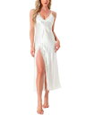 cheibear レディース サテン ロング スリープウェア Vネック スパゲッティストラップ シュミーズ レース スリップ ランジェリー ナイトガウン ホワイト L