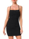 Allegra K レディース スパゲッティストラップ パーティー ボディコンドレス ルーシュ ミニドレス ブラック S
