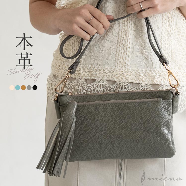 ショルダーバッグ レディース 斜めがけ 本革 mieno spira Diva ブランド 小さめ かわいい きれいめ お財布ポシェット 牛革 革 ショルダーバッグ ポシェット ミニバッグ 30代 40代 50代 2way フリンジ 卒業式 入学式 ギフト プレゼント 5F (07000194r)