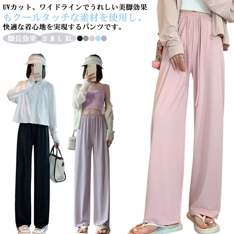 アイスシルク ワイドパンツ 接触冷感 レディース UVカット パンツ 春 夏 パンツ 薄手 ハイウエスト カジュアルパンツ ルーズ 長ズボン ロングパンツ 紫外線対策 ゆったり カジュアル 脚長効果 おしゃれ S M L XL