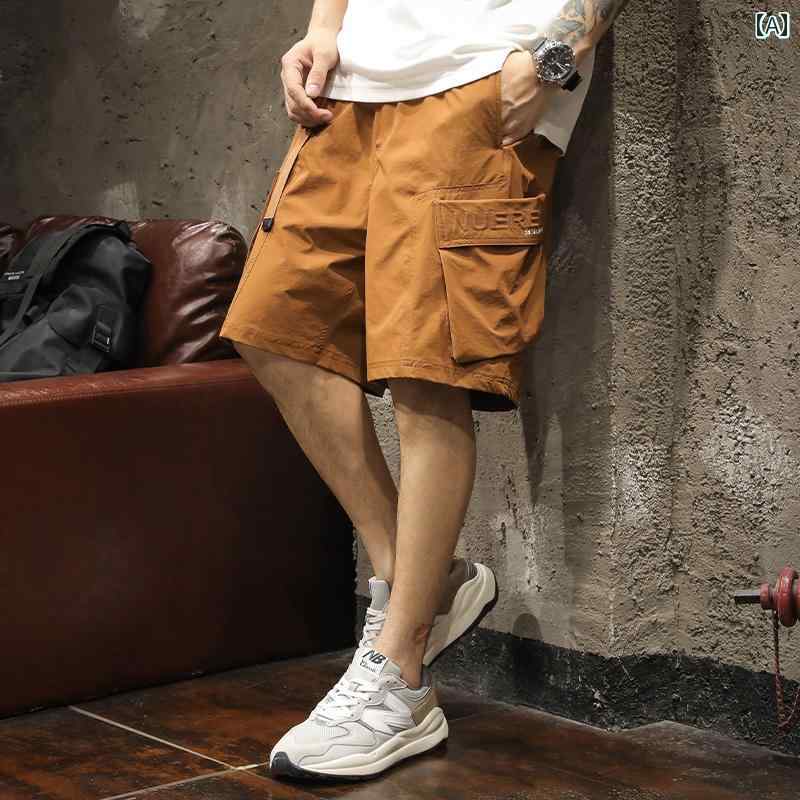 メンズ 男性用 ファッション オシャレ シンプル 大人 かっこいい ストリート ヒップホップ HipHop アメリカンン ショート パンツ 夏 ハーフ パンツ ルーズ ストレート スポーツ アイスシルク ミッド パンツ