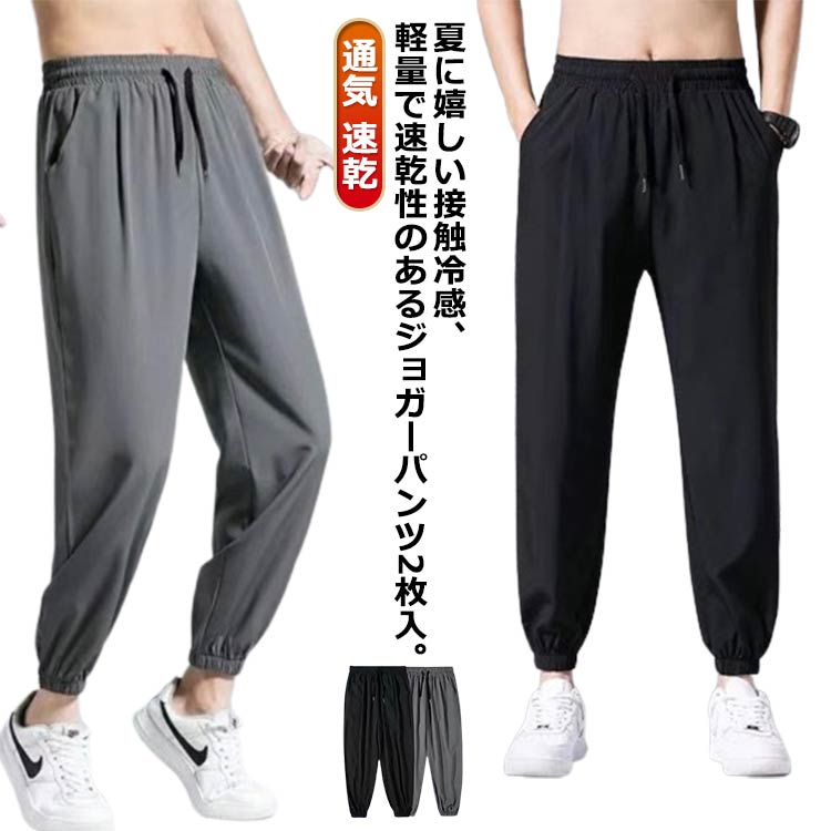 カジュアルパンツ ストレッチ 冷感パンツ 2枚入 ゴルフパンツ ジョガーパンツ 速乾 冷感パンツ 接触冷感 軽量 薄手 夏 涼しい スウェット 長ズボン チノパン 長ズボン アイスシルクパンツ トレーニング 通気 速乾 スポーツ メンズ