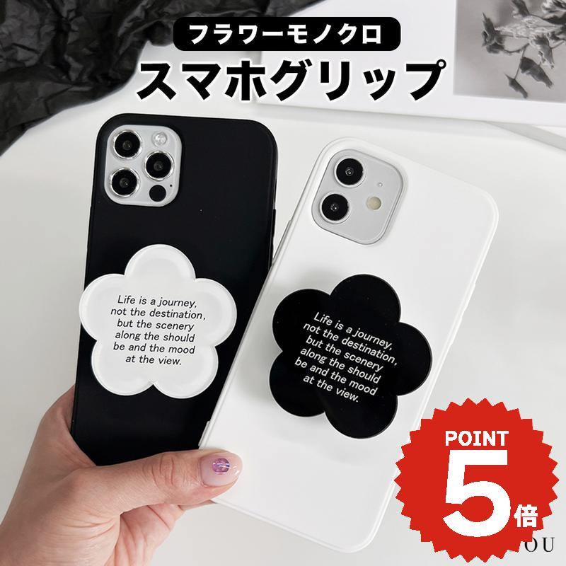 スマホグリップ 韓国 magsafe カードケース かわいい おしゃれ スマホリング グリップトック スマホスタンド マグセーフ スマホホルダー スマホアクセサリー カスタム フラワー 花 モチーフ モノクロ ロゴ