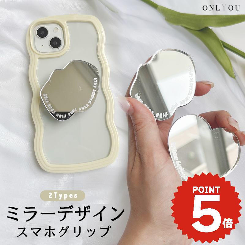 スマホグリップ 韓国 magsafe カードケース かわいい おしゃれ スマホリング グリップトック スマホスタンド マグセーフ スマホホルダー スマホアクセサリー カスタム ミラー 鏡 ロゴ ハート シルバー