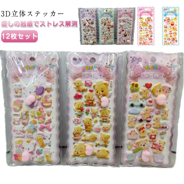【12枚セット】ぷにぷにおしりシール 可愛い 3D立体ステッカー ぷくぷく 動物 キャラクター ストレス解消 スクイーズ 文房具 手帳 ノート デコレーション DIY用 アルバム スマホケース ギフト プレゼント 送料無料