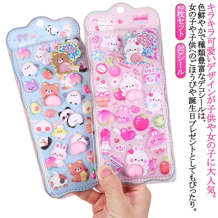 おしりぷにぷにシール 2枚セット スクイーズ 玩具 ストレス解消 シール 可愛い うさぎ くま ご褒美シール 3D 立体 泡ステッカー ぷくぷくシール お尻3Dシール ふわふわ もちもち デコレーション ごほうびシール 手帳用 スマホケース飾り デコ クリスマス 贈り物 ギフト