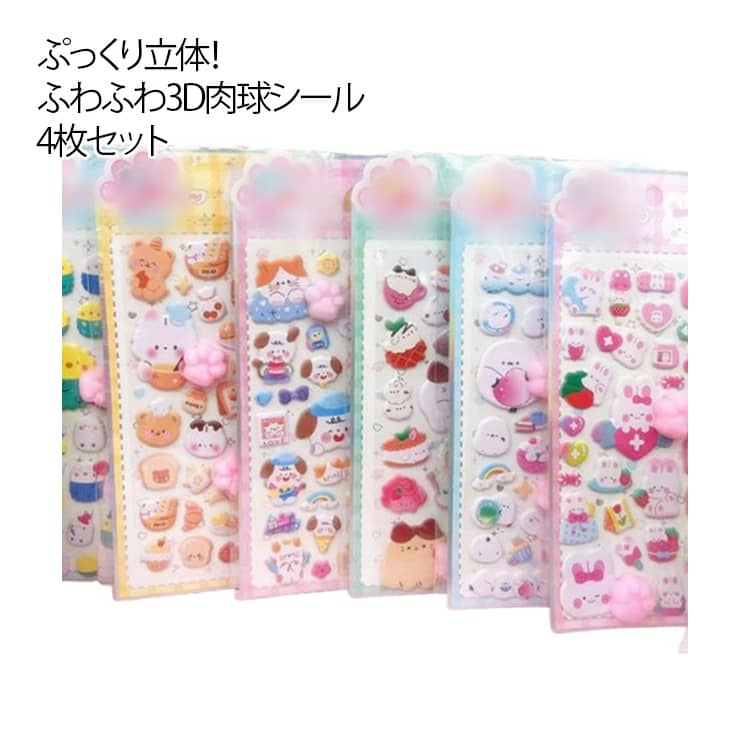 女の子 4枚セット 立体 デコ ぷっくりシール もっちりスクイーズ ぷくぷくシール 交換 ご褒美シール 動物 ステッカー シール帳 ぷにぷにシール もちもち かわいいシール 3D 玩具 4枚セット スマホケース お尻 女子 女児 DIY用 手帳用