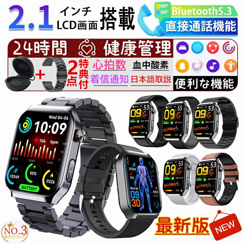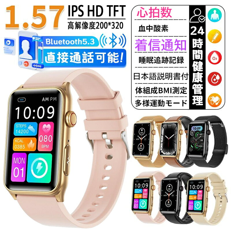 商品情報商品説明【2025最新モデル&Bluetooth5.4&Bluetooth通話機能】2025に新たに発表される人気のスマートウォッチは、低消費電力チップとBluetooth 5.4技術を搭載し、安定接続、接続範囲が広く、はスピーカー&高性能マイクが内蔵され、通話することができます。着信時には、スマートウォッチが振動したり音で注意したりして、画面に相手の電話番号や名前が表示されます。次に、着信に応答または拒否することができます。スマートウォッチ本体にはスマホと同様の通話機能が内蔵されており、ダイヤル、通信簿、通話履歴があり、スマホをポケットやバッグに入れたままでもBluetooth通話可能、運転中でも運動中でも両手を解放できます。【1.57長方形大画面&着心地がいい&音楽再生】スマートウォッチ本体の精緻な工芸が渾然に一体設計となり、1.57インチ全画面タッチパネルを採用し、画質がより鮮明に大画面で高精度、通知や文字を一目瞭然に表示され、鮮やかな色合いと読みやすさを実現しました。上下左右のスライド操作により、画面の切り替えも非常にスムーズになります。より高い解像度の視覚体験とスマホのようなタッチ触感を楽しめ、もっと便利に操作することができます。快適な視覚感と優れた操作感をもたらします。スマホと接続すれば、音楽のアプリを呼び出しできて、スマホを出さなくても音楽(前の曲、次の曲、再生、一時停止、音量調整)をコントロールできます。細い長方形のデザインは、手首の動きに何の不快感も与えません。【150+種類運動モード&200+多種類文字盤自由設定】スポーツウォッチはウォーキング、ランニング、サイクリング、山登り、サッカー、ヨガなど、さまざまなスポーツモードがあります。多種類スポーツ組み込み、歩数計、運動距離などなど150+種類の運動モードを記録して、運動計画の達成に役に立ちます、自分の状態を十分に把握します。スマートウォッチに本体は7種類の文字盤が内蔵されており、アプリと同期には200+種類の文字盤を選択することができ、そして、家族や恋人、アイドルなどの写真を文字盤の画面に変えることもできます。【Twitter/Facebook/Line等着信通知&IP67防水&多言語設定】Line、Twitter、Ins、Facebook、着信などの通知は、全部バイブレーションで通知されます。一切の大事な連絡を絶対に見逃しません。日常の手洗いや洗顔の際は取り外すの必要はなく、天気が荒れている日も、心配は不要です。※お風呂、サウナ、温泉水や温泉の湯気及び高い水圧等の高温環境では着用しないでください。22カ国の異なる言語を内蔵:日本語、英語、中国語、韓国語、スペイン語、フランス語などの多言語。【実用な機能満載&適応機種&品質保障】AI音声アシスタント、電卓、天気、カスタム機能モデル、目覚まし時計、タイマー、ストップウォッチ、スマホ探し、時計探し、遠隔撮影、輝度調整など、非常に豊富な機能があります。IOS10.0 / Android9.0以上対応のスマホに適応しています。【半額セールクーポンで最安4485円!】スマートウォッチ 1.57インチ 日本製センサー Bluetooth通話機能付き 24時間健康管理 心拍数 多機能 レディース メンズ LINE着信通知 女性 睡眠検測 運動記録 150+文字盤 高齢者プレゼント 日本語説明書付 iPhone対応 Android対応 クリスマス プレゼントおすすめ!【 iPhone対応 Android対応】運動モード 初心者向き 高齢者向け おしゃれ 健康管理の相棒 彼女 Line/Facebook/Instagram対応 日本語説明書 プレゼント 5