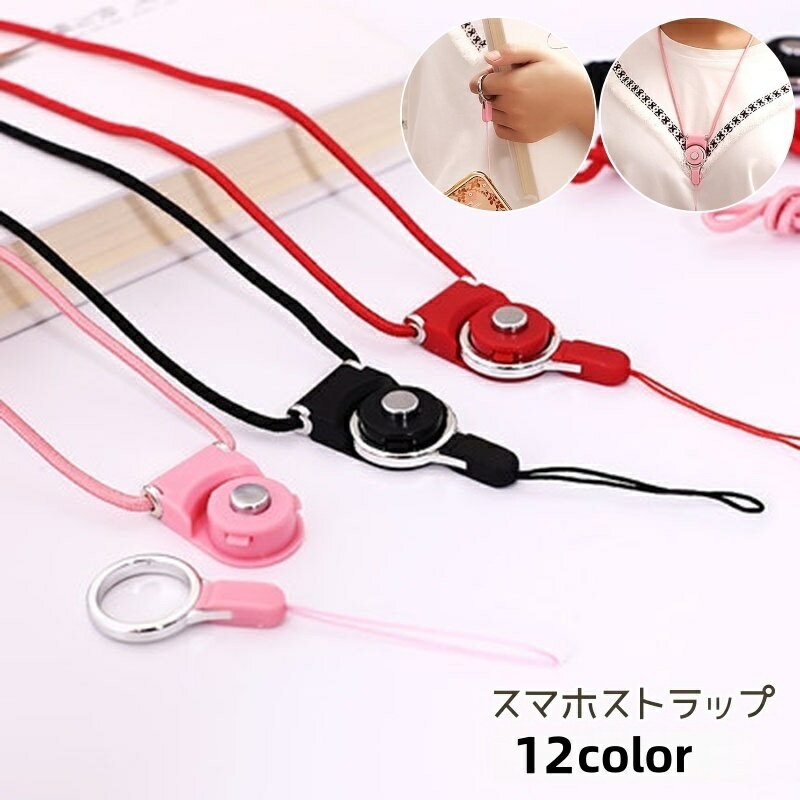 送料無料 ネックストラップ スマホストラップ 首掛け 紐 カードケース スマートフォン用 落下防止 紛失防止 カラバリ豊富 軽量 多用途 IDカード 社員証 通行証 おしゃれ 可愛い シンプル 黒 グレー 緑 ブラウン 青 ピンク