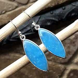 本物のブルー スカイ スミソナイト 925 ソリッド スターリング シルバー イヤリング 40mm Natural Rocks by Kala Genuine Blue Sky Smithsonite 925 Solid Sterling Silver Earrings 40mm