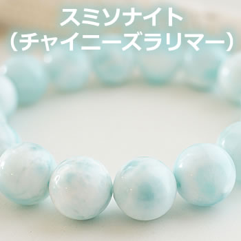 スミソナイトAAA 12mm ブレスレット 天然石 パワーストーン スミソナイト 天然石ブレスレット パワーストーンブレスレット チャイニーズラリマー 菱亜鉛鉱 スミソナイト チャイニーズラリマー 菱亜鉛鉱 一連 ブレスレット 天然石 パワーストーン メンズ レディース 人間関係 癒し 送料無料 ■超レアストーン★とっても珍しいです!!スミソナイト(チャイニーズラリマー)がブレスレットで登場です!! 優しげな淡いブルーのスミソナイトが初入荷しました!スミソナイトはとても珍しく、なかなか手にする機会はない石ですよ♪ スミソナイトは亜鉛を含む鉱物の一種で和名を「菱亜鉛鉱(りょうあえんこう)」と言います。 採掘された原石の状態はヘミモルファイトとよく似ていますが、ビーズに加工されたものはラリマーにも大変良く似ています。そのことから天然石の本場、中国ではこの石を“チャイニーズラリマー”とも呼んでいます。 スミソナイトは恐れや不安を拭い去り、過去のトラウマを癒すヒーリングストーンです。心が混乱してしまった時、その問題の原因がどこにあるかを的確に見つけ出し、気持ちの修正をしてくれるといわれています。 気分が落ち込みがちの時はスミソナイトを身につけることで、気持ちが高まり明るく楽しい空気を作ってくれるといわれます。 またスミソナイトは“好感、信頼、良識の象徴”です。人との調和を図りながら、周囲をうまくまとめ、自らの道を切り開く力を与えてくれるとされています。 仕事や地域の役員など、人をまとめなくてはいけない立場の方はスミソナイトを身につけてみてはいかがでしょうか。 [天然石 パワーストーン 関連石] ●スミソナイト チャイニーズラリマー 菱亜鉛鉱(りょうあえんこう) smithsonite / [商品ジャンル] ・ブレスレット / 色(カラー)は 、青(ブルー) です。 / [送料、配送について]こちらの商品は、 送料無料(送料込み)です。 / [商品対象]こちらの商品は、 レディース(女性)向け商品です。 メンズ(男性)向け商品です。 / [その他]こちらの商品は、 ギフト(ラッピング)対応です。 / 【cat_tag】「tag:smithsonite,tag:bracelet_power_ningenkankei,tag:bracelet_power_iyashi」 <スミソナイト> スミソナイトは1800年頃、スミソニアン博物館でお馴染みのイギリスの科学者ジェームズ・スミソンに因んで名付けられました天然石です。 ヘミモルファイトと同じものだとされていたスミソナイトが違うものであることを発見したのもジェームズ・スミソンだそうです。 スミソナイトの多くは葡萄状のボコボコとした塊で発見され、本来の色彩は無色か白色ですが結晶の隙間に別の元素が取り込まれることによって多彩に変化します。 結晶の中にカドミウムが含まれると黄色に、コバルトが含まれるとピンクに、そして銅が含まれると青(緑)色になるそうです。 また淡いブルーに色付いたスミソナイトはラリマーにも大変良く似ています。そのことから天然石の本場、中国ではこの石を“チャイニーズラリマー”とも呼んでいます。 時々、間違って販売されていることもあるそうなので注意が必要ですね。 スミソナイトは恐れや不安を拭い去り、過去のトラウマに働きかけてくれるヒーリングストーンです。心が混乱してしまった時、その問題の原因がどこにあるかを的確に見つけ出し、気持ちの修正をしてくれるといわれています。 気分が落ち込みがちの時はスミソナイトを身につけることで、気持ちが高まり明るく楽しい空気を作ってくれるといわれます。 またスミソナイトは“好感、信頼、良識の象徴”です。周囲の人々に好かれ、信頼と好感を得られるでしょう。 人との調和を図りながら、周囲をうまくまとめ、自らの道を切り開く力を与えてくれるとされています。仕事や地域の役員など、人をまとめなくてはいけない立場の方に良いかもしれませんね。■超レアストーン★とっても珍しいです!!スミソナイト(チャイニーズラリマー)がブレスレットで登場です!! 優しげな淡いブルーのスミソナイトが初入荷しました!スミソナイトはとても珍しく、なかなか手にする機会はない石ですよ♪ スミソナイトは亜鉛を含む鉱物の一種で和名を「菱亜鉛鉱(りょうあえんこう)」と言います。 採掘された原石の状態はヘミモルファイトとよく似ていますが、ビーズに加工されたものはラリマーにも大変良く似ています。そのことから天然石の本場、中国ではこの石を“チャイニーズラリマー”とも呼んでいます。 スミソナイトは恐れや不安を拭い去り、過去のトラウマを癒すヒーリングストーンです。心が混乱してしまった時、その問題の原因がどこにあるかを的確に見つけ出し、気持ちの修正をしてくれるといわれています。 気分が落ち込みがちの時はスミソナイトを身につけることで、気持ちが高まり明るく楽しい空気を作ってくれるといわれます。 またスミソナイトは“好感、信頼、良識の象徴”です。人との調和を図りながら、周囲をうまくまとめ、自らの道を切り開く力を与えてく