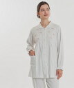 【ポイント】・洗練された大人かわいいストライプ柄・上品な丸襟の前開きシャツパジャマ・胸元に散りばめた小さなリボン・お肌に優しい綿100%のスムース素材ナルエー不動の人気、ストライプ。ストライプは縦のラインを強調してくれるため、すっきりとした印象を与え、シンプルで洗練された大人の雰囲気を演出します。飽きのこないナチュラルな配色で幅広い年齢層の方におすすめです。ゆったりとしたAラインのシルエットで体のラインを拾いにくく、リラックスした着心地が魅力。ポイントは胸元を彩る複数の小さなリボン。可愛らしさの中に、おしゃれさと遊び心を感じさせるディテールが目を惹きます。丸みのあるクラシカルな丸襟で、優しい印象に。袖口・足口はゴム入りのフリル仕上げで、手首や足首を華奢に見せながら実用的なデザインにしました。小さなリボンにたっぷりの可愛いを詰め込んだ一着。甘すぎない、大人の可愛らしさを求める方にぴったりです。【素材】表面のなめらかさが魅力のスムース素材。綿100%の自然な風合いと、やさしい肌ざわりが心と体を包み込みます。ふんわりとした厚みがありながら軽やかで、長時間着てもストレスを感じさせません。保温性にも優れており、寒い季節から春先まで幅広い季節で快適にお過ごしいただけます。【サイズ】M〜L:バスト 107cm|着丈 73cm|袖丈 57cm|ウエスト 62cm-最大 108cm|パンツ丈 96cm■品番:25-62414■展開カラー:グレー ピンク ブルー■家庭洗濯可※照明の関係により、実際よりも色味が違って見える場合があります。また、パソコン・スマートフォンなどの関係により、製品と画像カラーが若干異なる場合もございます。別カラーはこちら! グレー ピンク