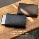スライドカードケース レザーウォレット ミニ財布 小さい財布 革財布 RFID スキミング防止 メンズ レディース ユニセックス 本革 イタリアンレザー キャッシュレス メンズ財布 ブラック ブラウン ダークブラウン ブルー グリーン 【あす楽】