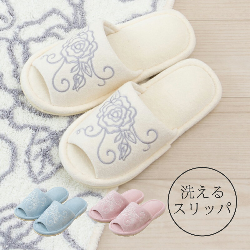 スリッパ 「クリアローズ2」単品販売[ トイレスリッパ トイレタリー 洗える 花柄 バラ 薔薇 ローズ おしゃれ 可愛い かわいい 上品 エレガント 姫系 インテリア トイレ用品 ] ライトブルー ライトピンク ホワイト ブルー ピンク グレー