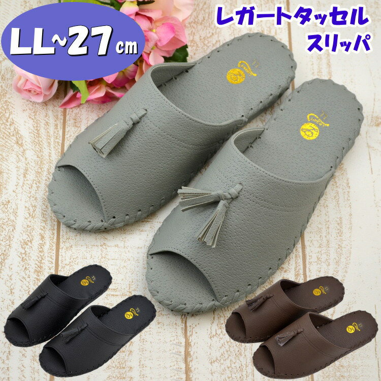メンズ スリッパ レガート タッセル LL〜27cm グレー ブラウン ブラック シンプル レザー風 オフィス 軽量 水拭き おしゃれ 男性 ルームシューズ 紳士 一年中 年間 前あき 春夏 秋冬 部屋履き 合成皮革 インテリア雑貨 プレゼント 贈答 軽い ギフト包装無料