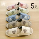 【来客用スリッパ 5足セット】1足あたり900円 モンステラ麻中 スリッパ 来客用 ルームシューズ 葉柄 麻 和風 前開き おしゃれ 通年用 人気 落ち着いたデザイン 爽やか 静音 洗える トイレ 室内 夏用 男女兼用 上品 会社