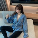 リラックス スリム デニムジャケット 女性用 シャツ 春秋 ジャケット ス スタイリッシュ レディース 小さい カジュアル