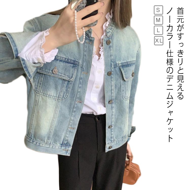 ジャケット ノーカラー Gジャン レディース デニムジャケット ジージャン ゆったり ジャケット ショート ジージャン スリム デニムジャケット ショート丈 アウター ライトアウター 羽織 カットオフ 長袖 大人 トップス 韓国 ファッション アウター