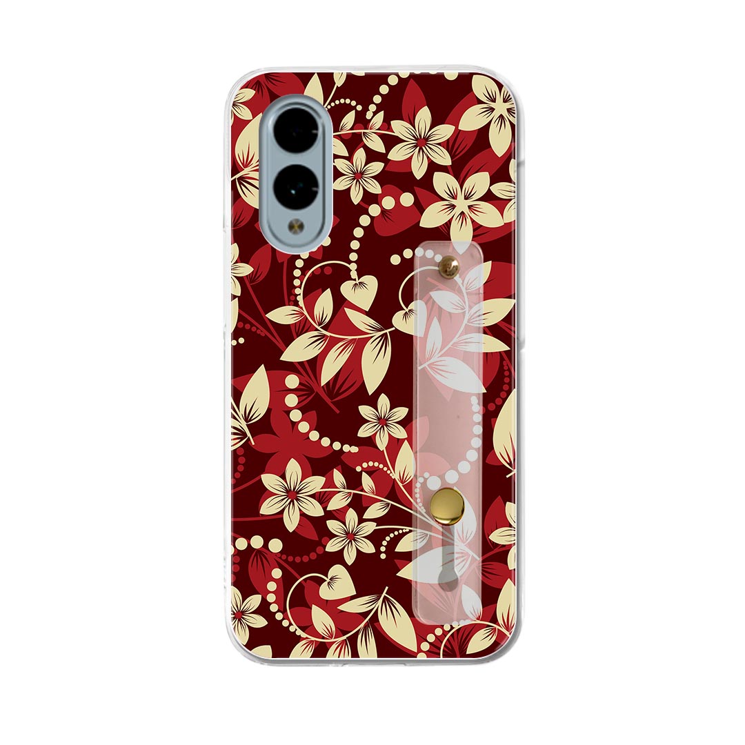 【送料無料】arrows We2 F-52E 用 ハードケース スマホ ベルト付 スマホバンド 落下防止 シリコン スタンド機能付 スリム 背面 片手持ち カバー 携帯リング フィンガーリング 角度調整 007993 花 赤 レッド 模様