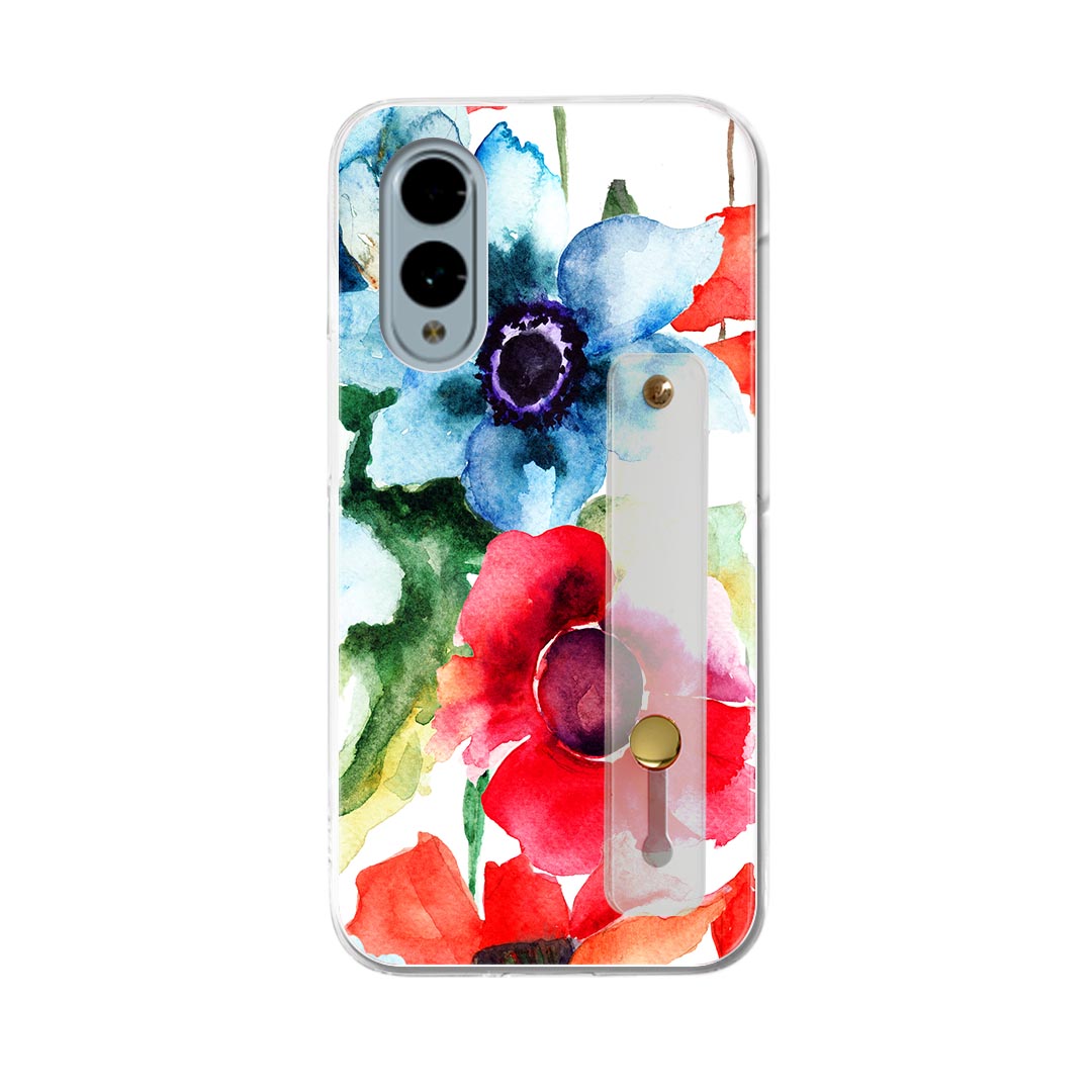 【送料無料】arrows We2 F-52E 用 ハードケース スマホ ベルト付 スマホバンド 落下防止 シリコン スタンド機能付 スリム 背面 片手持ち カバー 携帯リング フィンガーリング 角度調整 008095 花 水彩 赤 ブルー レッド