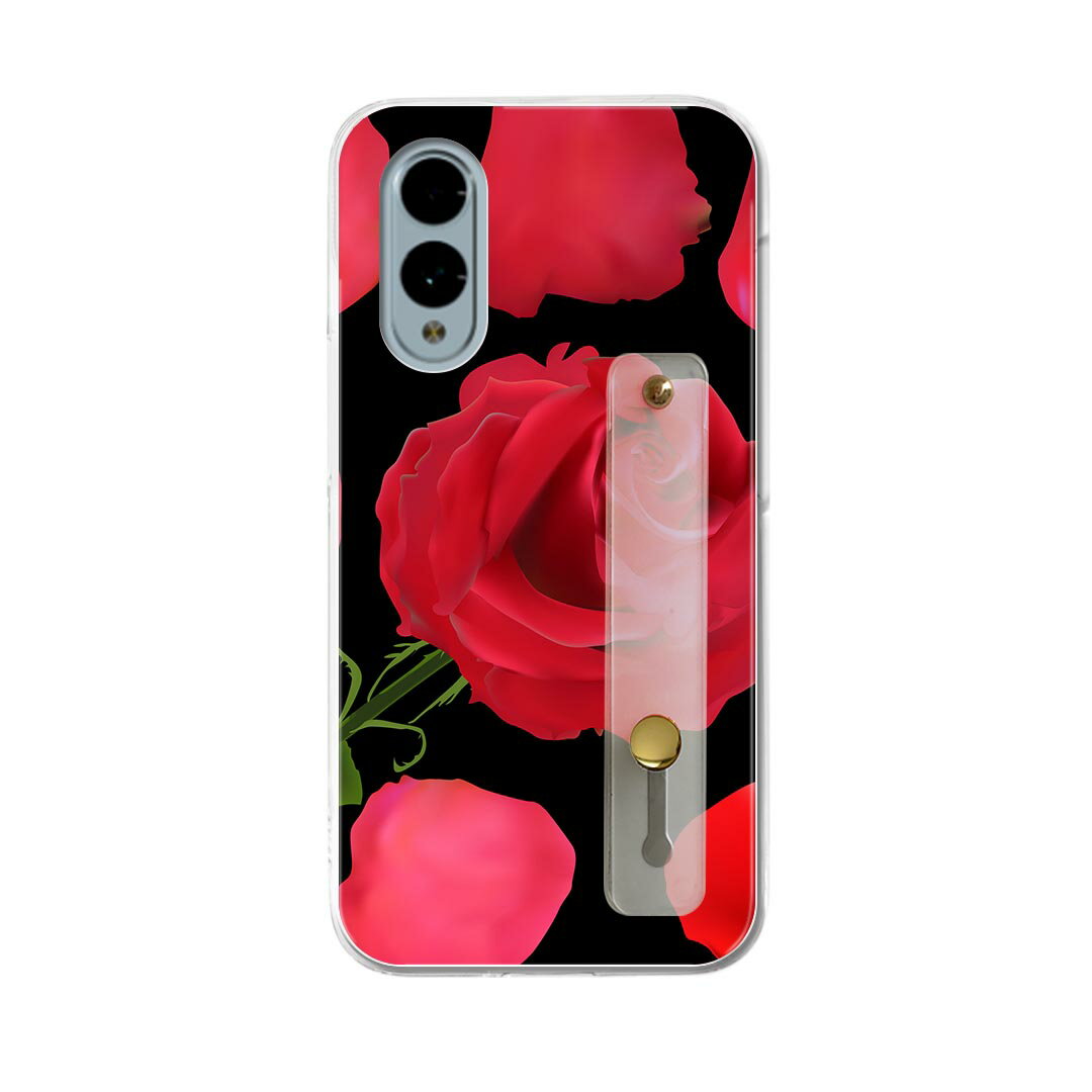 【送料無料】arrows We2 F-52E 用 ハードケース スマホ ベルト付 スマホバンド 落下防止 シリコン スタンド機能付 スリム 背面 片手持ち カバー 携帯リング フィンガーリング 角度調整 008906 花 薔薇 赤 レッド