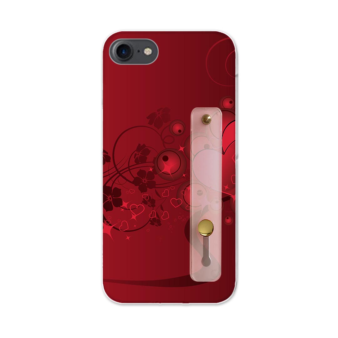 【送料無料】iPhoneSE ケース 第2世代 / 第3世代 iPhone 7 / iPhone 8 共通対応ハードケース スマホ ベルト付 スマホバンド 落下防止 シリコン スタンド機能付 スリム 背面 片手持ち カバー 携帯リング フィンガーリング 角度調整 007953 赤 レッド ハート 花