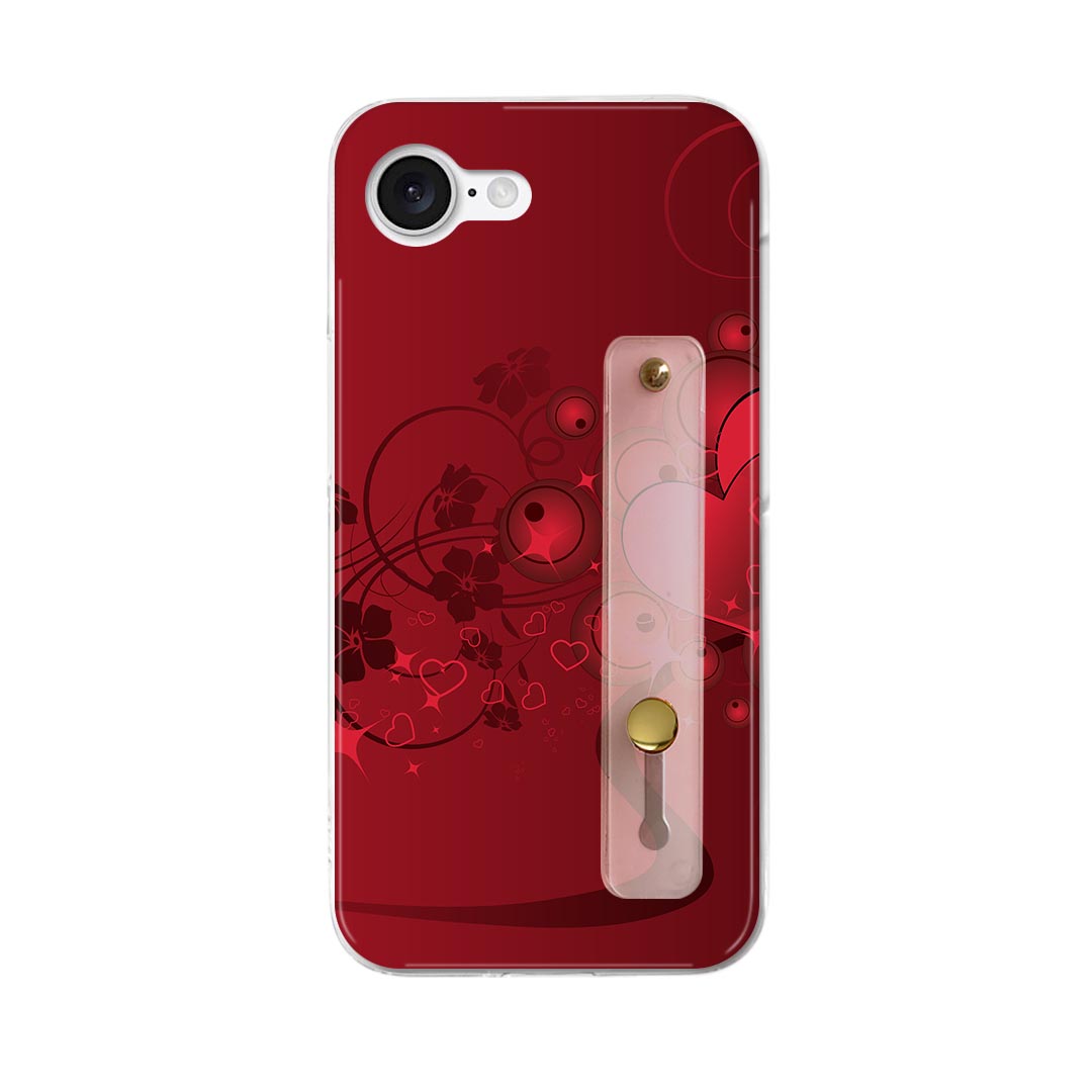 【送料無料】iPhone 16e 用 各キャリア 共通対応 iphone16e ハードケース スマホ ベルト付 スマホバンド 落下防止 シリコン スタンド機能付 スリム 背面 片手持ち カバー 携帯リング フィンガーリング 角度調整 007953 赤 レッド ハート 花